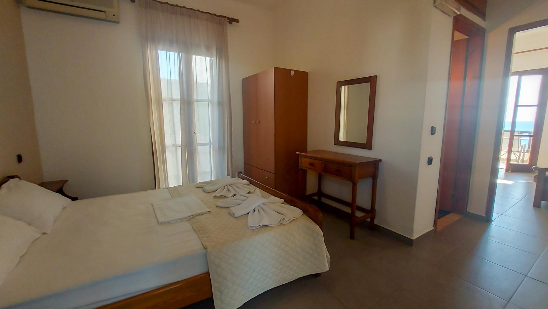 Whether you’re a small family, a group of friends, or couples seeking a peaceful seaside escape, Apartment No. 1 is an ideal choice. It offers a spacious living environment, a fully equipped kitchenette, a private balcony with breathtaking sea views, and the ability to accommodate up to four guests. Experience the beauty and tranquility of Lentas beach from the comfort of this charming ground floor apartment.